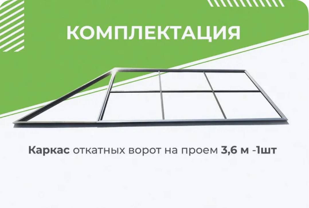 В комплект не входит: привод и рейка. Эти элементы приобретаются отдельно с учётом веса створки, ширины проёма и требований к автоматизации.